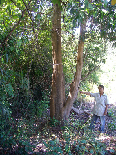 Thế nhưng, trong đơn khiếu nại cũng như khi tiếp xúc trực tiếp với chúng tôi, ông Trần Quang Dũng đều khẳng định, năm 2007, khi Địa chính xã đo đạc thì ông Lại Văn Tùng cũng có mặt tại rẫy; ông cũng không hề “thừa nhận” việc tự ý chỉ ranh giới để cán bộ Địa chính đo đạc như trong biên bản đối chất mà Tòa viện dẫn trong bản án. Ông Dũng cho biết, ranh giới giữa thửa đất số 20 của ông và thửa số 19 của bà Ngô Thị Vân (trước đây) được xác định bởi một đường vành đai cản lửa rộng khoảng 1m, chạy theo cạnh dọc của 2 thửa đất; 2 mép của đường vành đai này được các bên chủ đất trồng cây keo. Sau gần 20 năm, 2 hàng cây keo dọc đường vành đai đã bị các bên chặt bỏ, chỉ còn lại 2 cây rất lớn nằm về 2 phía, đường vành đai trở thành bờ bụi ngăn cách 2 thửa đất. Chúng tôi đã gặp nhiều người dân làm rẫy ở khu vực này từ nhiều năm nay và họ đều khẳng định, nơi bờ bụi hiện tại chính là đường vành đai cản lửa và là ranh giới giữa 2 thửa đất suốt gần 20 năm nay. Ông Dũng cho biết, có hơn 10 người đã và đang canh tác đất ở khu vực này từ năm 1992 đến nay sẵn sàng làm chứng về đường ranh giới này là bất di bất dịch suốt những năm qua, trong đó có bà Trần Thị Mỹ Tho, người đã chuyển nhượng thửa đất số 18 cho ông Lại Văn Tùng. Và ông Dũng đã cung cấp những nhân chứng này cho Tòa án cấp phúc thẩm.