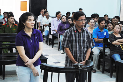 | Vợ chồng bị cáo Man Văn Lực và Trần Thị Như Trinh tại Tòa. |