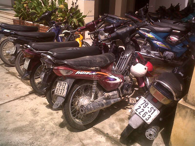 | Các xe máy bị trộm cắp đang được thu giữ tại Công an huyện Vạn Ninh. |