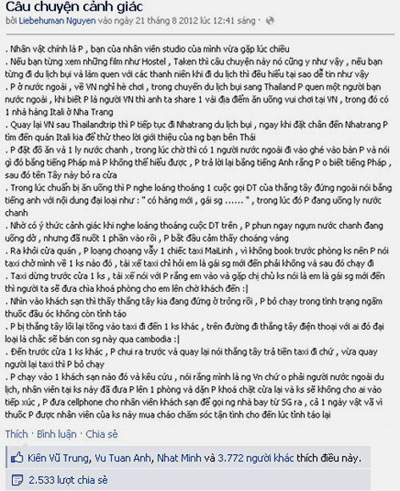 | Bài viết trên facebook của Liebehuman Nguyen. |