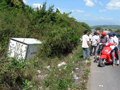 Cú tông khiến ông Phát và xe máy của ông này văng xuống lề đường. Xe tải 78C- 015.76 lao xuống hố bên Quốc lộ 1A (cùng chiều với xe máy bị nạn), xe tải 79H- 2536 nằm ngang đường. Ông Phát bị thương nặng và được đưa đi cấp cứu, 2 tài xế xe tải bị thương nhẹ.
