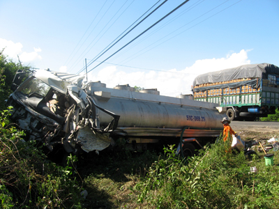 Thông tin ban đầu, vào thời trên xe bồn biển số 51C-06625 chở khoảng 10.000 lít mật mía đang chạy theo hướng Bắc - Nam khi đi đến cung đường trên đã tông trực diện vào xe ô tô khách giường nằm biển số 17K-7939 chạy ngược chiều.