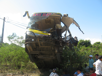 Sau cú va chạm mạnh, chiếc xe bồn văng xuống lề đường, rồi tiếp tục lao vào một bụi rậm; chiếc xe khách giường nằm lao xuống một khoảng đất trống ven đường xoay nhiều vòng và chỉ dừng lại bên bờ ruộng thấp hơn so với mặt đường khoảng 2,5m, phần đầu chổng ngược lên trời.