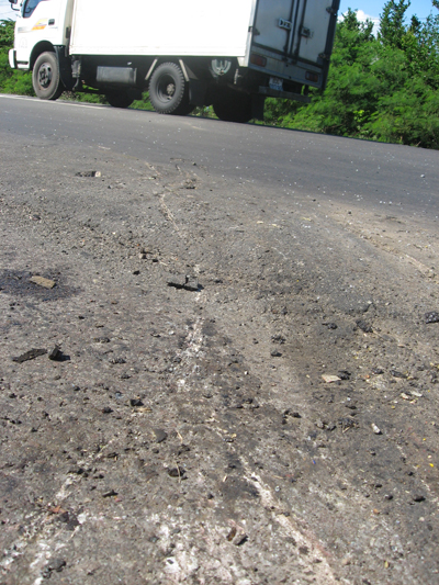 Vết cày xước trên mặt đường do vụ tai nạn. |