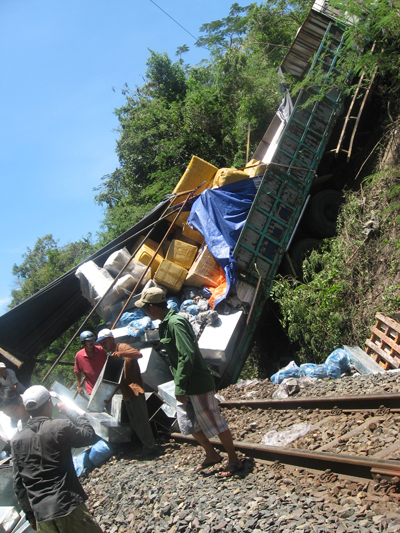 | Hiện trường vụ TNGT tại Vĩnh Lương ngày 29-4. |