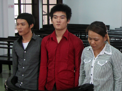 Bị cáo Võ Phi Hiệp (đứng giữa), Phạm Thị Kim Phương, Võ Văn Quang. |