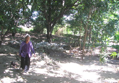 | Bà Huệ bên phần đất đang tranh chấp. |
