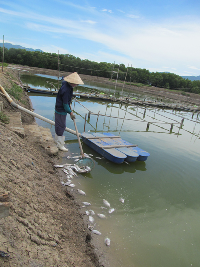 Bà Lê Thị Như Phượng - Giám đốc Doanh nghiệp Tư nhân Phượng Hải (TP. Nha Trang) đang thuê đìa tại xã Ninh Ích cho biết, doanh nghiệp của bà vừa bị thiệt hại hơn 342 triệu đồng do bị kẻ gian đầu độc cá nuôi dưới hồ. Số cá chết bao gồm: 10.000 con cá bớp giống chuẩn bị xuất bán; 5.000 con cá chẻm (0,3 kg/con); 3.000 con cá dìa (0,2 kg/con) và 200 con cá lù đù (0,3 kg/con)…