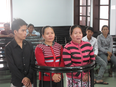 Từ trái qua, các bị cáo: Thanh, Lẹ, Loan. |