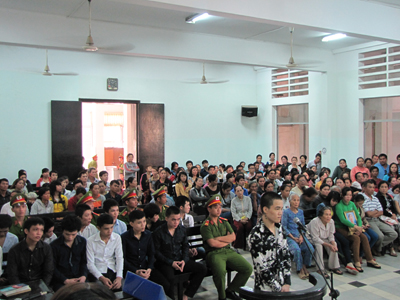 | Trần Viết Duy (đứng trước) và 14 bị cáo trong phiên xử |