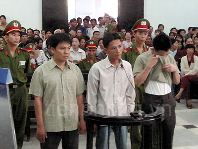 Hạnh “nhỏ” (trái) tại phiên tòa tháng 4- 2005. |