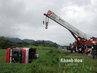 Đến trưa cùng ngày, xe khách bị nạn đã được xe cứu hộ đưa lên Quốc lộ 1A. |