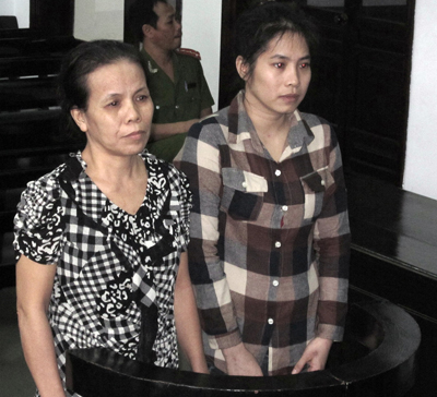 Bị cáo Thủy (trái) và bị cáo Lam. |
