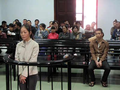 Bị cáo Phan Thị Ngọc Loan và Huỳnh Anh Nhựt (ngồi hàng ghế đầu, bên phải). |
