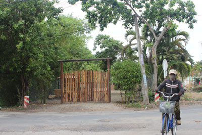 | Phần cổng và bờ rào mới được gia đình ông Tri xây dựng. |