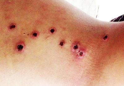 Sau gần một tuần điều trị, tuy vết thương trên người anh Nguyễn Hữu Lộc (44 tuổi, trú thôn Đắc Lộc 1) đã khô nhưng vẫn âm ỉ đau nhức. Vì vậy, gia đình đưa anh đến Bệnh viện 87 tái khám.