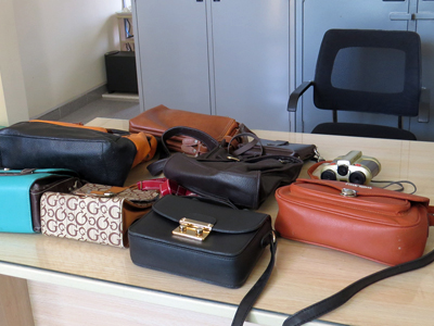 Nhiều giỏ xách phụ nữ được tìm thấy tại nơi ở của hai nghi phạm. |
