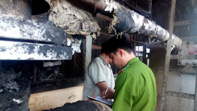 | Công an tiến hành khám nghiệm hiện trường để điều tra nguyên nhân gây cháy. |