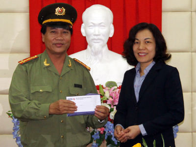 | Lãnh đạo BIDV Chi nhánh Khánh Hòa trao thưởng cho đơn vị tham gia phá án. |