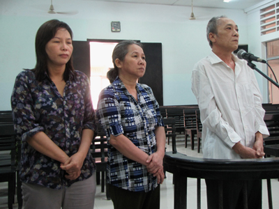 | Từ trái qua, các bị cáo: Hà, Tùng, Hùng. |