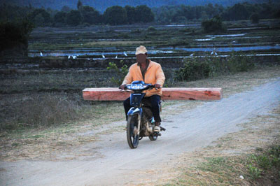 Theo chỉ dẫn của người dân, chúng tôi tìm đến khu vực nghĩa trang Hòn Am (thôn Bình Lộc 2). Sau một hồi chờ đợi, khoảng 16 giờ 30 những chiếc xe máy vận chuyển gỗ trái phép bắt đầu xuất hiện. Trong vòng 1 giờ, chúng tôi đếm được hơn 10 xe máy chở gỗ phóng qua; trên mỗi xe là 1 táp gỗ có chiều dài trên dưới 2m, rộng khoảng 25 - 30cm. Một người dân địa phương cho biết: “Các xe máy không đi theo từng tốp là để tránh lực lượng chức năng, nếu có động, người trước bị bắt thì chỉ cần một cuộc điện thoại là người sau tẩu tán tang vật ngay. Muốn biết người đi khai thác gỗ nhiều hay không cứ theo hệ thống thủy lợi, ngược lên phía đập trên Dốc Mỏ sẽ gặp”.
