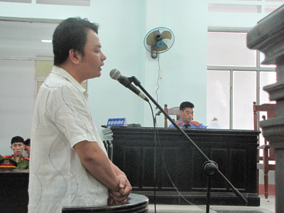 | Bị cáo Hồng Hà và Anh Trung (ảnh dưới) đều khai bị cáo Thành Trung có mặt tại quán cà phê ở Khánh Sơn và đưa ra tỷ lệ ăn chia khi bán trầm kỳ. |