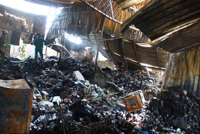 Tuy nhiên, ngọn lửa đã thiêu rụi nhiều ki ốt trong chợ; mái tôn các ki ốt trong chợ bị sập; gạch, ngói cùng các mặt hàng: mỹ phẩm, đồ gia dụng, nước giải khát, dầu ăn… vương vãi khắp nơi, hư hỏng.
