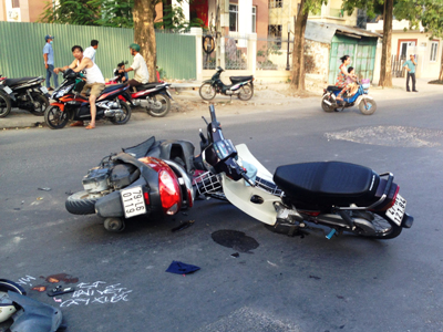 Sau khi gây tai nạn, người đàn ông đi xe máy 79L6-0119 đã rời khỏi hiện trường. Hai chiếc xe máy bị hư hỏng nặng.