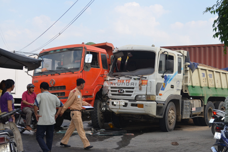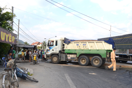 Vào thời điểm trên, xe tải mang biển kiểm soát (BKS) 79D-0169 do anh Nguyễn Quốc Đại trú tại xã Cam Hòa, huyện Cam Lâm điều khiển, khi cho xe quay đầu thì bất ngờ xe tải mang BKS 79D-0029 do anh Ngô Tùng An, trú tại tỉnh Bình Định đang chở cát theo hướng cùng chiều, do không làm chủ được tốc độ nên đã va chạm vào xe 79D-0169 và cùng nhau “dìu” sang làn đường đối diện. Lúc đó ông Võ Đình Quý điều khiển xe mô tô mang BKS 79N6-6700 do tránh 2 xe nên mất lái tông vào lề đường, bị thương. Vụ tai nạn làm 2 xe bị hư hỏng, riêng xe 79D-0029 bị hư hỏng nặng phần đầu bên phía phụ xe.