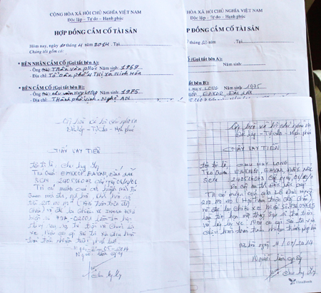 | Giấy mượn tiền và hợp đồng cầm cố tài sản của Chu Huy Long |