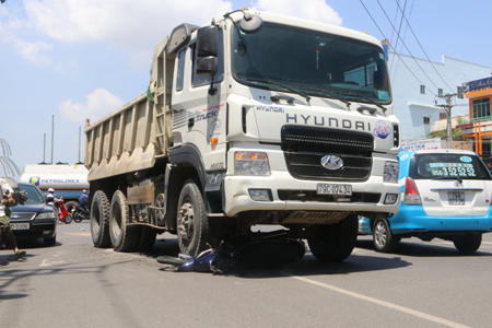 Khoảng 11 giờ ngày 20-3, tại khu vực vòng xoay Mả Vòng, TP. Nha Trang, đoạn đầu đường Yersin, xảy ra vụ tai nạn nghiêm trọng giữa xe ben và xe máy, làm một phụ nữ tử vong.