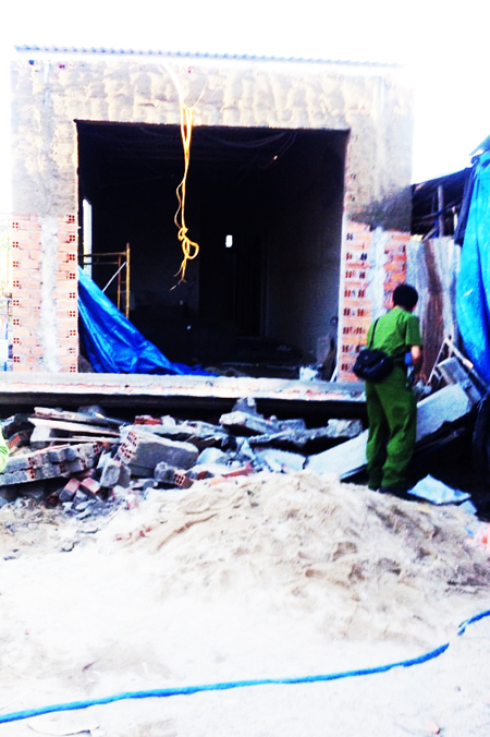 Khi đang chỉ đạo công nhân làm việc, bất ngờ tấm đan bê tông phía mặt tiền căn nhà đổ sập, khiến chủ thầu xây dựng đứng bên dưới tử vong tại chỗ, 1 công nhân bị thương nặng. Công trình này thi công khi chưa được cấp phép xây dựng.