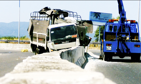 Vào lúc 14 giờ ngày 12-8, trên Đại lộ Nguyễn Tất Thành, chiếc xe tải biển số 51C-169.59 lưu thông theo hướng Nha Trang - Cam Ranh khi đến đèo Cù Hin đã bị mất lái, tông ngã đổ một đoạn dải phân cách dài gần 20m, thùng xe bị bể, làm rơi vương vãi hàng hóa xuống đường, rất may lái xe không bị thương.