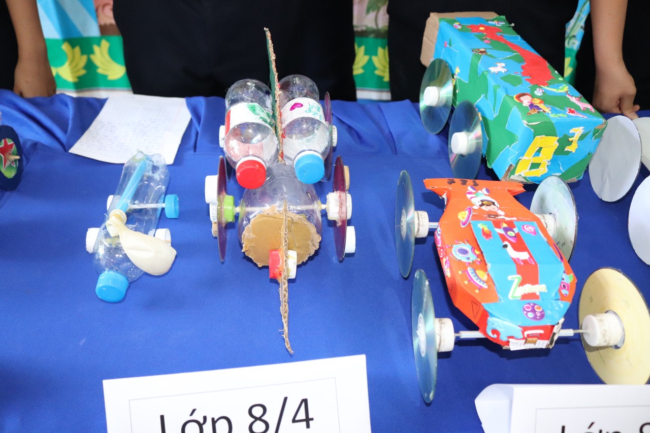 Em Đặng Minh Nhiên (học sinh lớp 9/1) cho biết, sản phẩm của lớp tham dự lần này được hoàn thành trong vòng 1 tuần nhờ sự chung tay và ý tưởng của cả lớp. Vật dụng được sử dụng để làm xe là từ các chai, ống nhựa, bong bóng, khẩu trang… đã qua sử dụng trong chính gia đình các em. Nhiên chia sẻ: “Các bạn trong lớp ai cũng thích thú, hào hứng về cuộc thi này. Chúng em được tự tay chọn lựa các vật dụng bấy lâu nay chỉ sử dụng một lần rồi vứt đi, từ đó làm thành một sản phẩm dự thi thân thiện và có ích cho môi trường”.