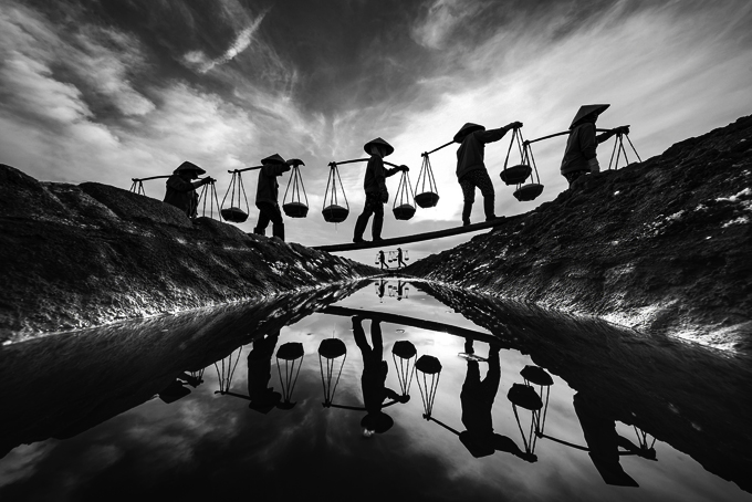 “Thu hoạch muối đêm”, tác giả Tuấn Ngọc, giải nhì cuộc thi ảnh “Ngày ánh sáng quốc tế SPIE”. |