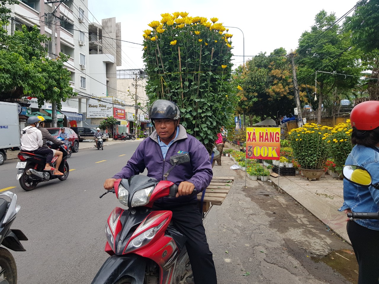 Chiều 30 Tết, không khí mua bán tại các khu vực bán hoa Tết dọc các tuyến đường của TP. Nha Trang vẫn nhộn nhịp. Đa số người bán hoa đã hạ giá, “xả hàng” để thu hút khách mua trong thời gian cuối cùng của năm cũ. Nhiều người tranh thủ thời gian sau khi dọn dẹp nhà cửa để dạo chợ hoa, mong tìm thêm những chậu hoa đẹp về tô điểm cho ngôi nhà trước thềm năm mới. Nhiều người mua hoa chiều cuối năm với hy vọng mua được hoa ưng ý với giá rẻ hơn so với vài ngày trước. Theo một số chủ hoa, hoa được bày bán tới cuối giờ chiều hoặc đến khuya 30 Tết.