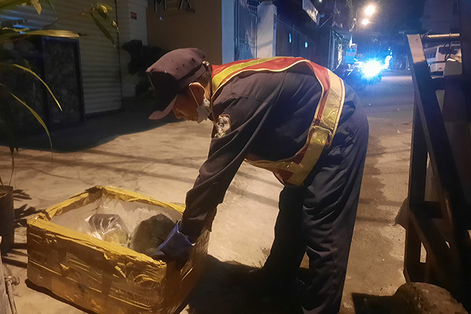 Công nhân đến tận các hộ dân trên đường Bắc Sơn để lấy rác.