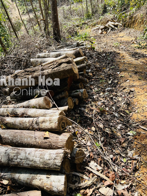 Nhiều đống gỗ lâm tặc để lại hai bên đường.