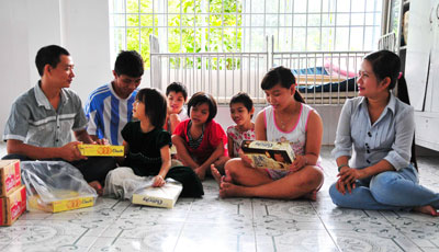 Một buổi chiều hè, tại Trung tâm BTXH tỉnh, chúng tôi tình cờ gặp đôi nam, nữ mang theo nhiều túi đồ, dắt tay nhau đi thẳng đến dãy nhà Hồng Đào, nơi có những đứa trẻ mồ côi nô đùa trên tầng 1. Đến chân cầu thang, nam thanh niên cất tiếng gọi lớn: “Các em ơi, xuống xách đồ giùm anh chị nào!”. Lập tức, có tiếng trẻ đồng thanh vọng xuống: “A! anh Tưởng lại đến kìa”. Rồi 4-5 đứa trẻ cùng chạy xuống, quấn quýt xách quà bánh và dắt tay 2 người khách lên phòng.