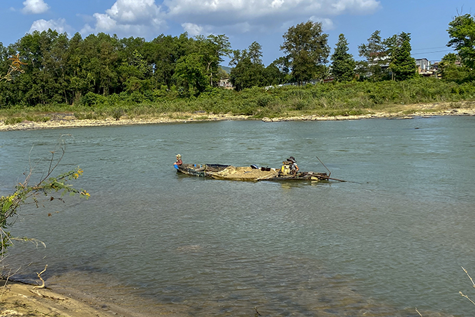 Khoảng 9 giờ ngày 2-3, chúng tôi theo chân tổ công tác của Công an huyện Diên Khánh, Phòng Tài nguyên và Môi trường huyện, UBND xã Diên Lâm kiểm tra điểm khai thác, tập kết khoáng sản tại thôn Hạ (xã Diên Lâm). Bất ngờ với sự có mặt của đoàn kiểm tra nên những người khai thác cát không kịp tẩu tán hết tang vật, phương tiện. Ngoài 3 ghe đang hoạt động khai thác cát bị đánh chìm khi lực lượng chức năng xuất hiện, trên bờ sông vẫn còn 1 xe máy múc do Nguyễn Ngọc Tuân (sinh năm 1991, trú thôn Tây 3, xã Diên Sơn) điều khiển đang múc cát từ khu vực bờ sông Cái lên thùng xe ô tô tải. Trên thùng xe còn nguyên 1,8m3 cát; trên bờ sông có những đống cát vun đầy còn đẫm nước với khối lượng khoảng 60m3. Điểm tập kết cát trái phép này chẳng xa lạ gì với cơ quan chức năng và chính quyền địa phương vì đã bị xử lý nhiều lần, nhưng vẫn ngang nhiên tồn tại. Thậm chí, lượng cát tập kết ngày càng lớn hơn.