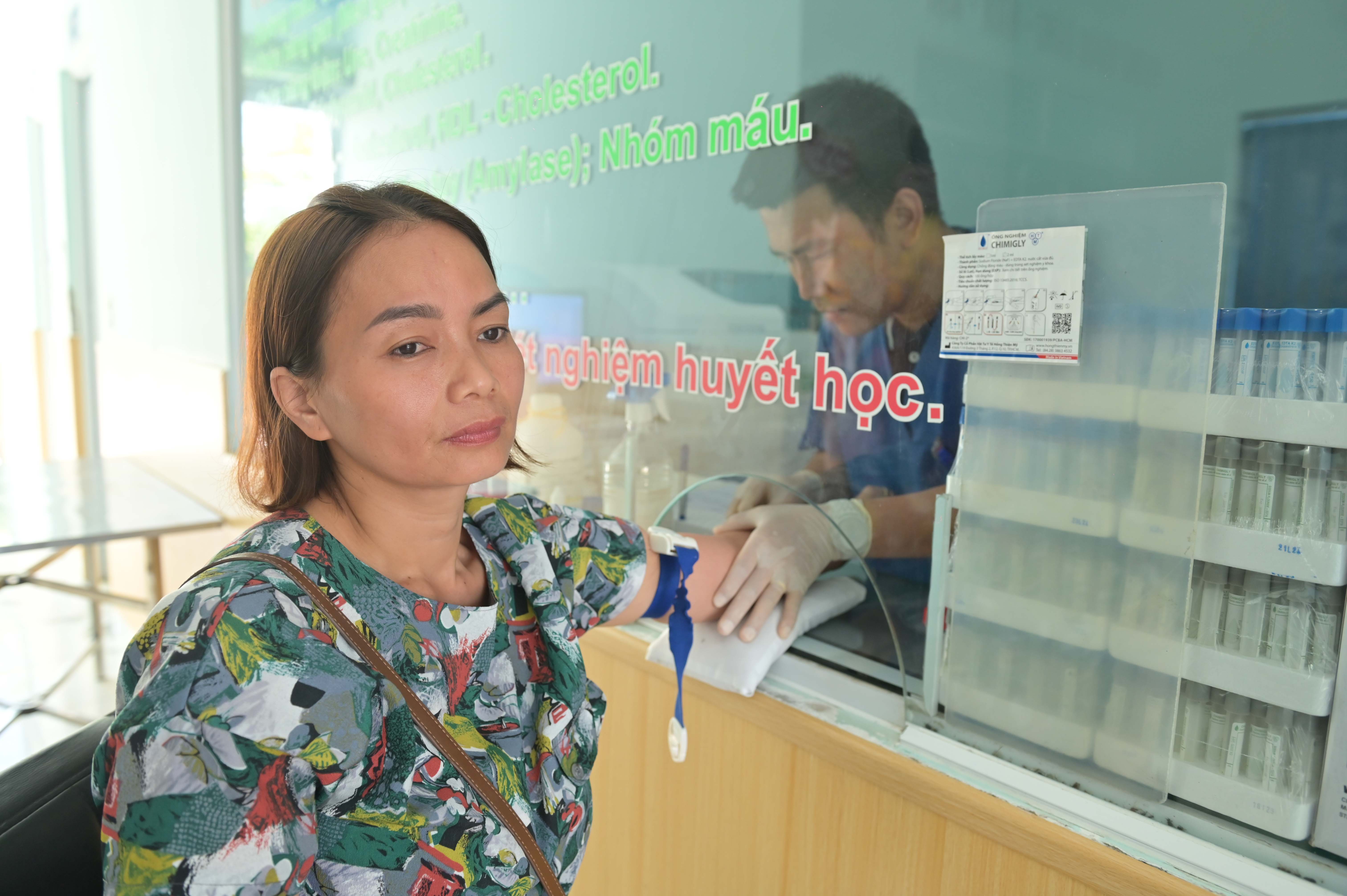 Gần 8 giờ sáng, chúng tôi có mặt tại Bệnh xá Lữ đoàn 101, nơi đây đã có khá đông người đến khám bệnh. Ở cửa ra vào, người dân xếp hàng lấy số thứ tự để chờ vào khám; trong các phòng khám, xét nghiệm, các y, bác sĩ đều tất bật với công việc, hết bệnh nhân này lại đến bệnh nhân khác vào để được thăm khám.