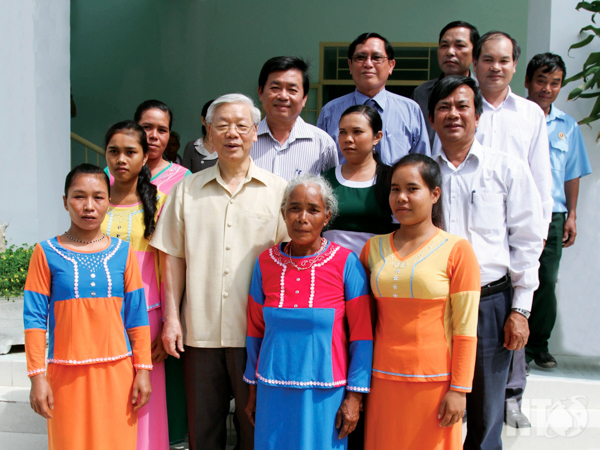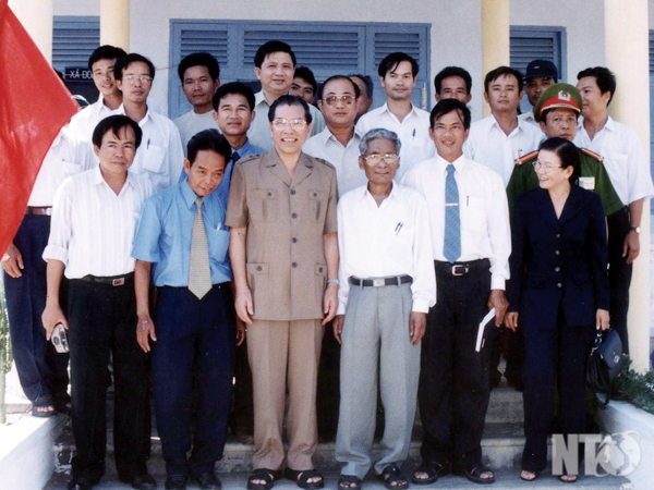 Tổng Bí thư Nông Đức Mạnh với các đồng chí lãnh đạo tỉnh và huyện Bác Ái (Năm 2003).