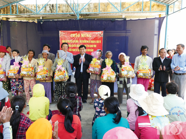 thăm, chúc tết các hộ nghèo,gia đình chính sách ở thôn Xóm Bằng, xã Bắc Sơn, huyện Thuận Bắc (Tháng 2 - 2018).