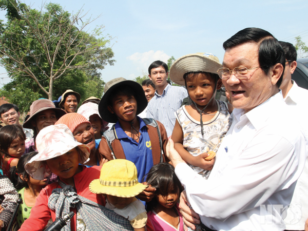 Thủ tướng Phan Văn Khải về thăm và tặng quà gia đình chính sách tiêu biểu huyện Bác Ái (Tháng 8-2005).