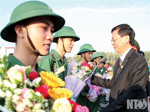 và động viên các thanh niên Tp. Phan Rang-Tháp Chàm lên đường nhập ngũ (Tháng 3 - 2018).