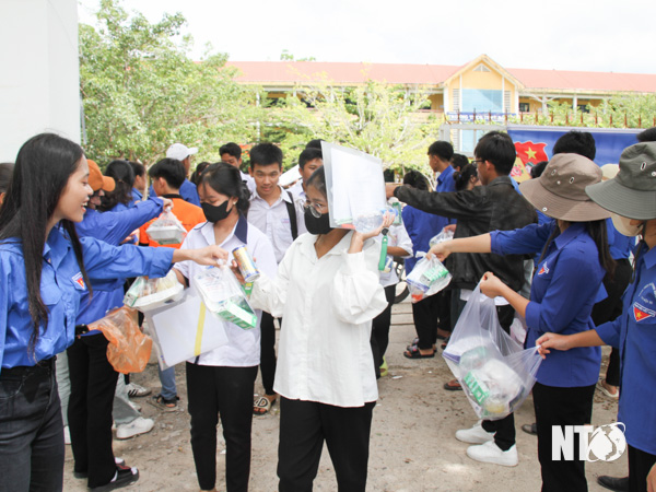 Các đoàn viên, thanh niên vận động các nhà hảo tâm hỗ trợ cơm và nước uống cho các thí sinh tại Trường THPT Bác Ái. Ảnh: Kha Hân