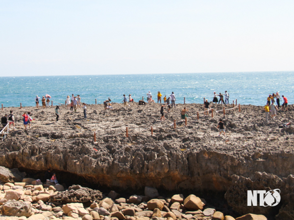 Nhiều du khách khám phá vẻ đẹp san hô cổ Hang Rái (Ninh Hải). Ảnh: Kha Hân