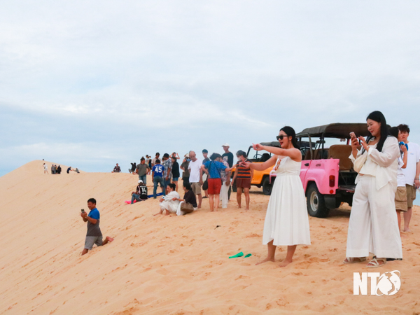 Đông du khách khám phá vẻ đẹp của đồi cát Mũi Dinh, xã Phước Dinh (Thuận Nam). Ảnh: N.Diệp