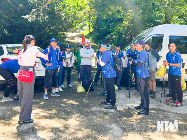Du khách trải nghiệm trên cung đường thác đá bàn của khu Vườn Quốc Gia Phước Bình. Ảnh: Kha Hân