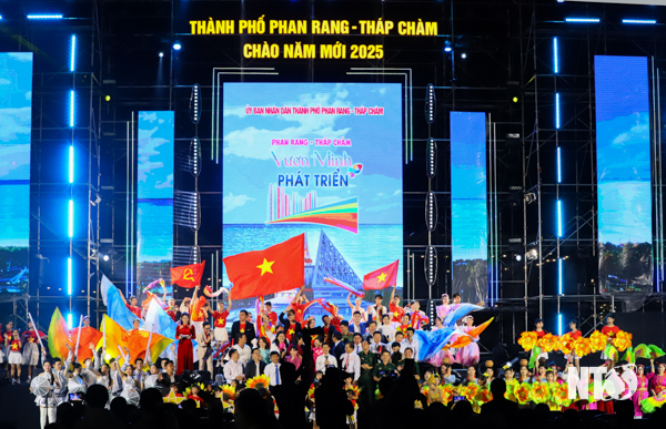 Lãnh đạo Tp.Phan Rang-Tháp Chàm cùng hàng nghìn người dân, du khách tham dự Chương trình nghệ thuật “Chào năm mới 2025”.